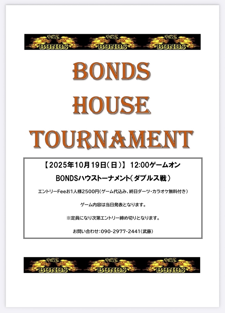 10月19日(日)昼12時ゲームオン!!!!ハウストーナメント開催♪♪エントリー募集中です。